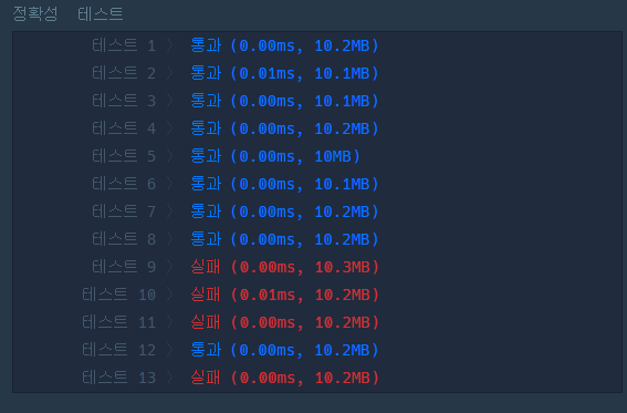 - 테스트 케이스 8번 하나를 제외 하고 여전히 그대로다.