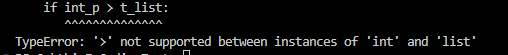 int_p 와 t_list 안에 있는 값들을 하나씩 비교해야되는 데, 그렇지 못해 타입에러가 났다.
