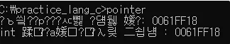 # include <stdio.h> int main(){ int *p; int a; p = &a; printf("포인터 p에 들어 있는 값 : %p \n", p); printf("int 변수 a가 저장된 주소 : %p \n", &a); return 0; }어쩌다...