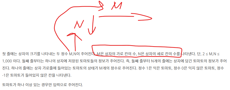 - 방금 든 생각인데 여기서 익은 토마토가 없다면 print(-1) exit() 하는 것도 좋을 거 같다.