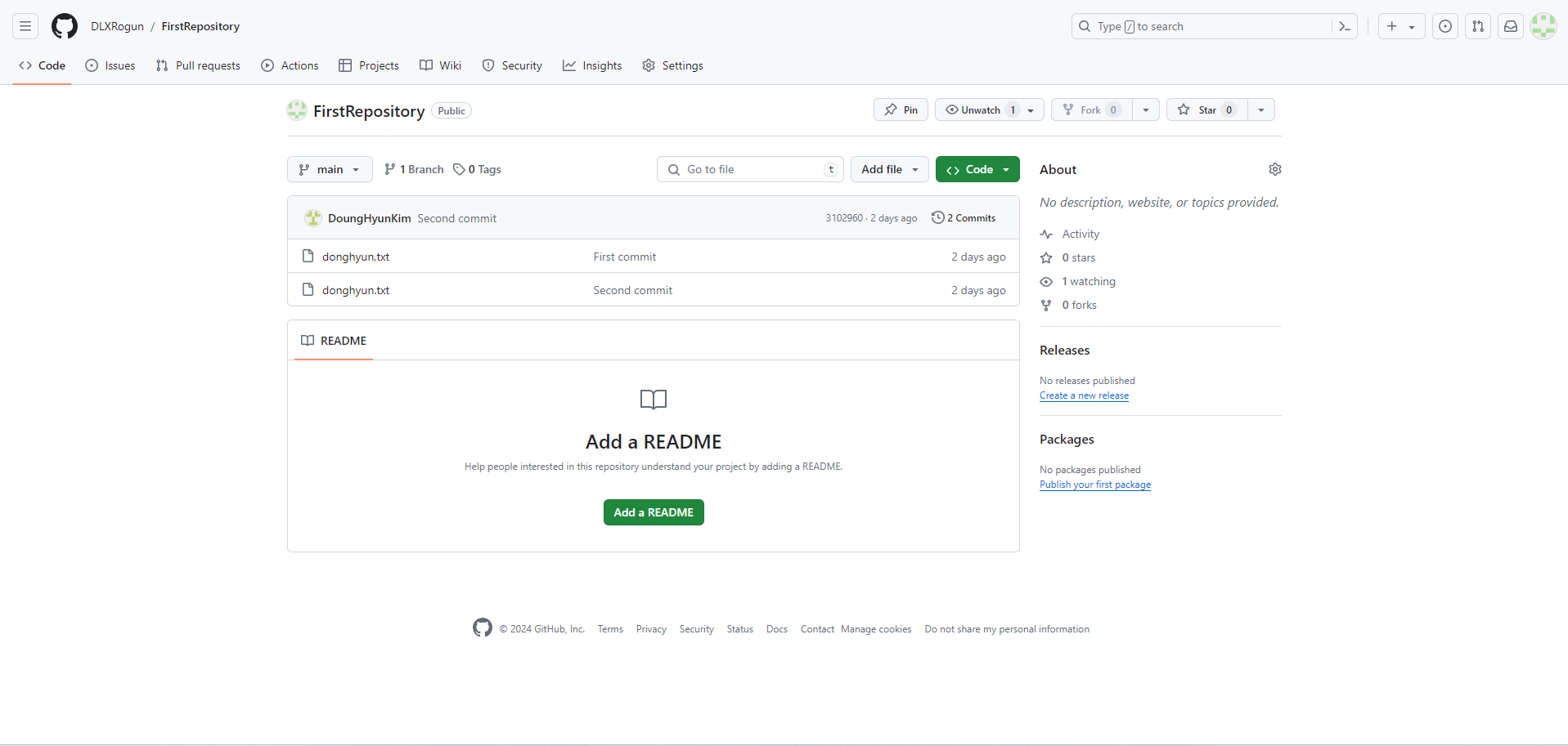 git push origin main 명령어를 쳤을 때 오류 나서 아무것도 안 바뀐 화면이 !!