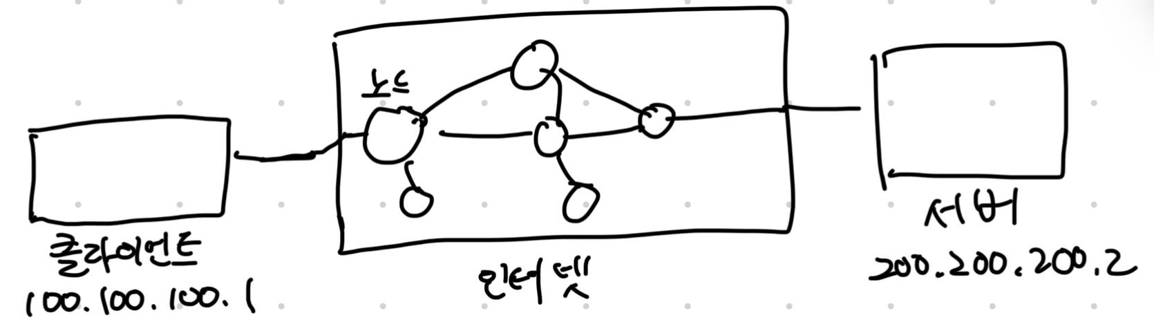 - 클라이언트와 서버가 통신하기 위해서 중간에 노드를 거쳐서 간다.
