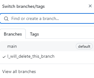위 사진 처럼 깃허브에서 브랜치를 잘못 만들었다고 가정한 뒤, 로컬에서 삭제하는 법을 말씀드리겠습니다.