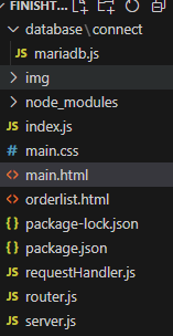 <!--main.html--> <!DOCTYPE html> <html> <head> <meta charset="UTF-8"> <title>Main</title> <link rel="stylesheet" href="/static/main.css"> <!--수정--> </head> <body> <h1>Tennis market</h1> <div id="txt_welcome"> Welcome to Tennis market! <br> Enjoy your shopping. <br> <br> <a href="./orderlist.html">order list</a> </div> <div style="display:grid; grid-template-columns: 1fr 1fr 1fr;"> <div class="card" id="redRacket"> <img class = "card_img" src ="./img/redRacket.png"> <p class="card_title">Red Racket</p> <input class = "card_button"type="button" value="order" onclick="location.href='/order?ProductId=1'"> </div> <div class="card"id="blueRacket"> <img class = "card_img" src ="./img/blueRacket.png"> <p class="card_title">Blue Racket</p> <input class = "card_button"type="button" value="order" onclick="location.href='/order?ProductId=2'"> </div> <div class="card"id="blackRacket"> <img class = "card_img" src ="./img/blackRacket.png"> <p class="card_title">Black Racket</p> <input class = "card_button"type="button" value="order" onclick="location.href='/order?ProductId=3'"> </div> </div> </body> </html>// server.js const express = require('express'); // 이 부분 추가 const app = express(); // 이 부분 추가 const http = require('http'); const url = require('url'); function start(route, handle) { function onRequest(request, response) { let { pathname } = new URL(request.url, `http://${request.headers.host}`); route(pathname, handle, response); // 수정: route 함수에 response 객체를 전달 } // 정적 파일을 제공할 디렉토리를 지정합니다. app.use('/static', express.static(__dirname + '/public')); // 이 부분 추가 // 모든 요청을 Express 애플리케이션으로 라우팅합니다. app.all('*', function (req, res) { // 이 부분 추가 onRequest(req, res); }); http.createServer(app).listen(8888); } exports.start = start;쩝 안되네요. 해결 방안 아시는 분이 있으실까요?