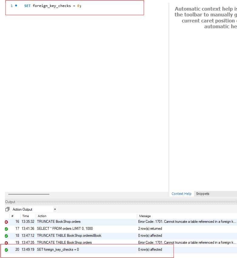 DELETE FROM BookShop.orderedBook;3. 외래 키 제약 조건 제거 후 TRUNCATE 실행 후 재추가